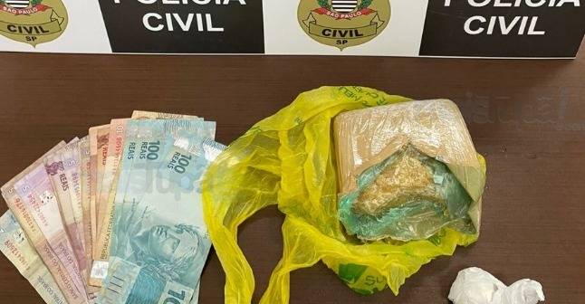 No imóvel localizado à Rua Piratininga, os agentes encontraram um tijolo de crack e uma pedra grande de cocaína, além de dinheiro.