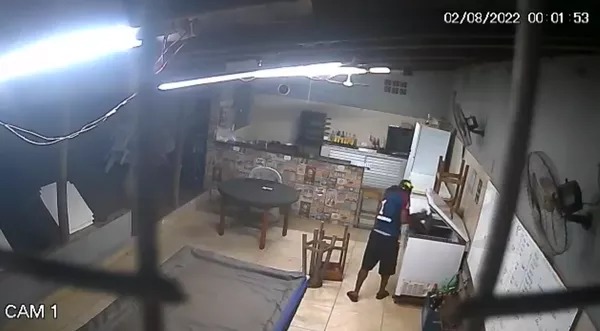 Uma câmera do circuito interno de monitoramento da confraria flagrou imagens do momento do crime, mostrando a presença do suspeito no local e exata ação dele ao abrir um freezer, pegar as bebidas e sair em seguida.