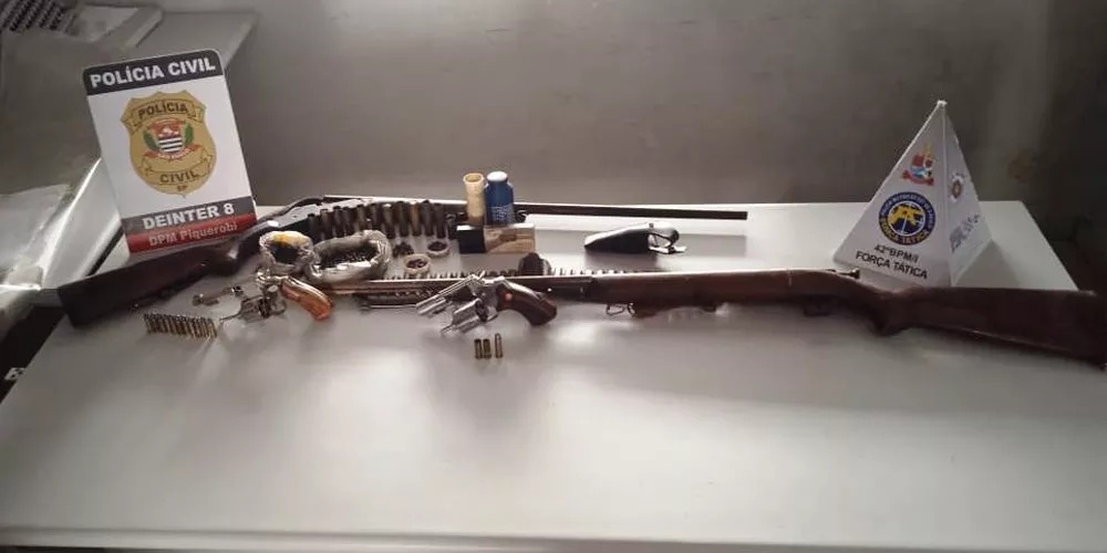 Uma operação conjunta realizada pelas polícias Civil e Militar para combater a posse irregular de armas de fogo e munições utilizadas em atividades de caça ilegal prendeu em flagrante três homens, nesta quinta-feira (17), em Piquerobi (SP).
