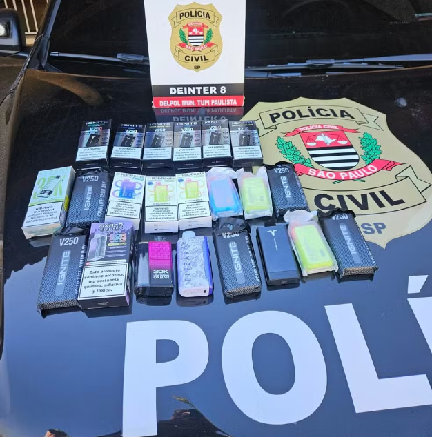 A Polícia Civil reforçou que a importação, propaganda e comercialização de cigarros eletrônicos são proibidas em todo o território nacional. A venda desses produtos configura crime de contrabando, com pena prevista de até cinco anos de reclusão, podendo haver agravantes caso sejam oferecidos a menores de idade.