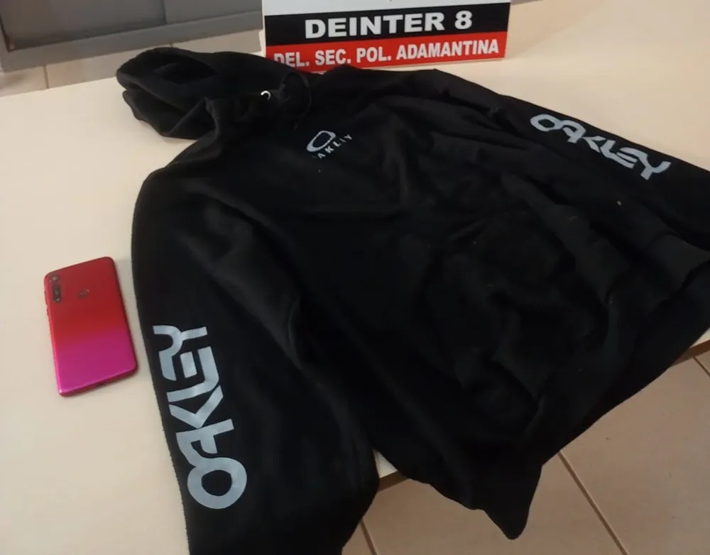 O rapaz, de 19 anos, foi identificado vestindo o mesmo moletom que estava usando, nas imagens captadas nas câmeras de segurança do município, e junto a ele estava o celular da vítima.