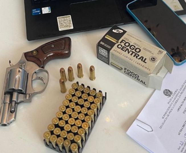 Durante a operação, uma arma de fogo foi apreendida na residência de um dos suspeitos, que foi preso em flagrante por posse irregular de arma de fogo.