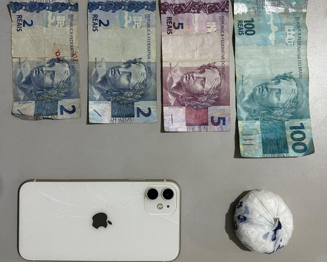 Na sequência da vistoria, a motorista que dirigia o carro e a passageira traseira foram revistadas por uma policial militar feminina. A passageira carregava no bolso esquerdo uma porção de cocaína.