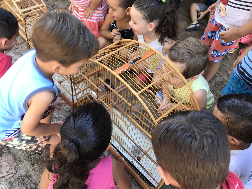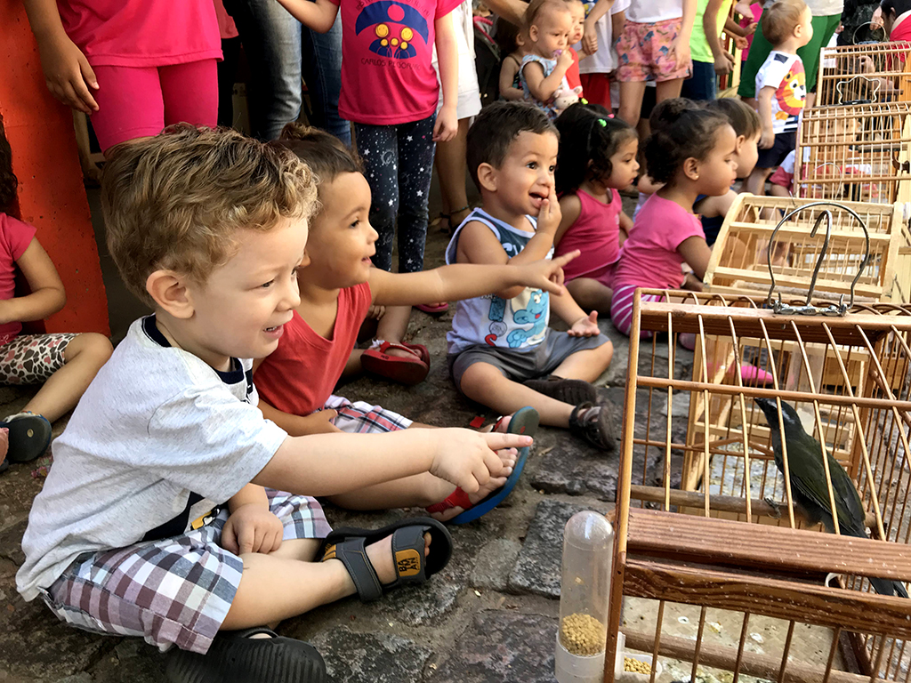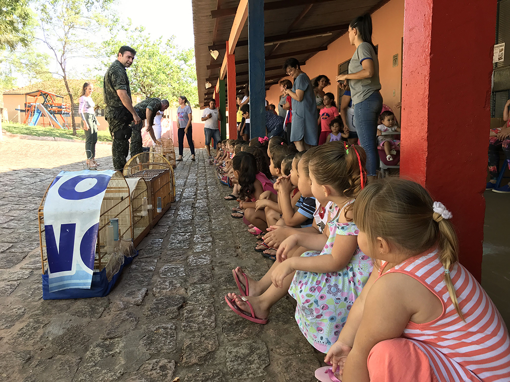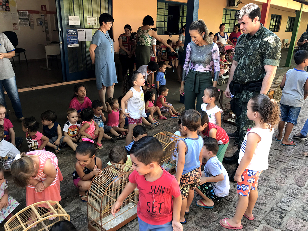 As crianças tiveram contato com os pássaros ainda em gaiolas, após o desembarque das viaturas, e puderam fazer a observação detalhada das espécies. Em seguida, o grupo se dirigiu a uma área de mata, ao lado da Instituição, onde foi realizada a soltura.