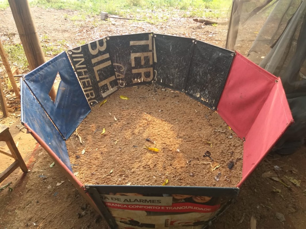 No local, confirmando a denúncia anônima, os policiais visualizaram uma rinha de galos que estava em andamento, com dois galos índios brigando dentro do rebolo, calçados com esporas artificiais.