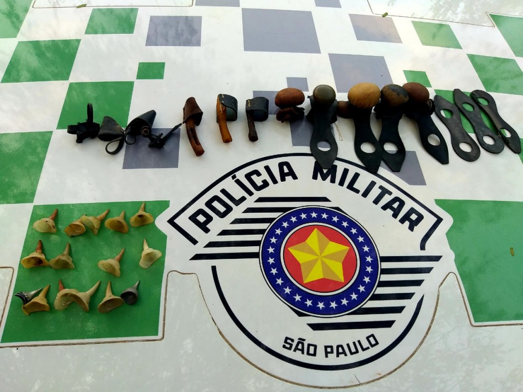 Além dos galos, também foram apreendidas 13 esporas de acrílico, duas esporas de alumínio, um rebolo (rinha), sete biqueiras, cinco buchas de treino e três elásticos de bucha.