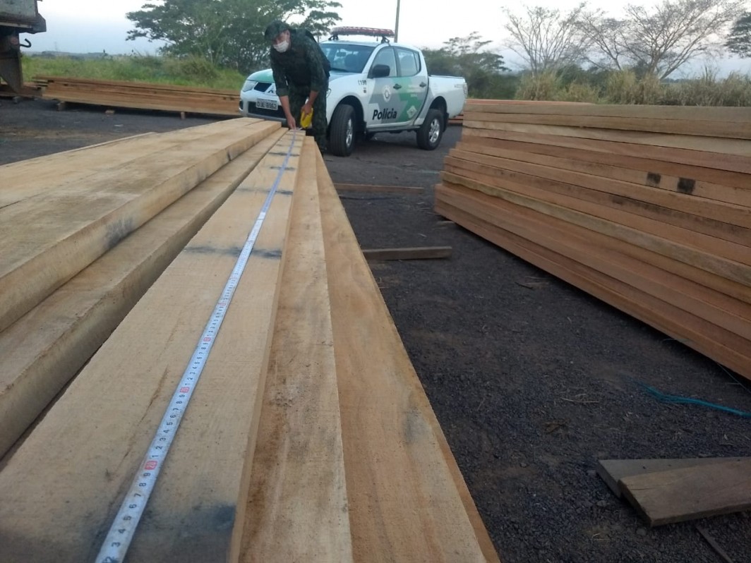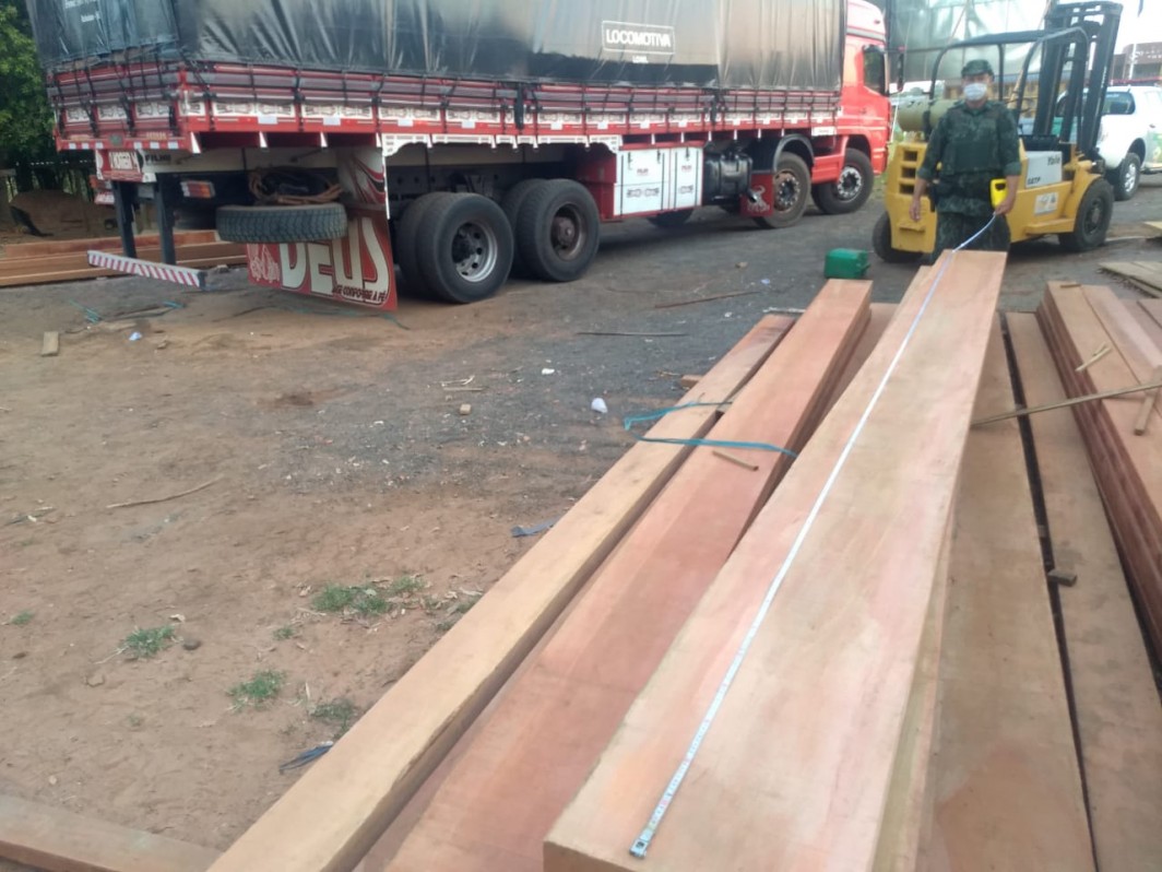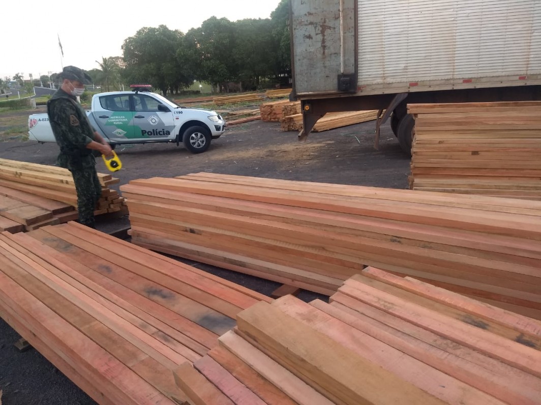 Segundo a PM Ambiental, além dos AIA, foram apreendidos o caminhão, a carreta e os 45,967 m³ de madeira entre caibro, viga, prancha, pranchão e forro. ficando depositados aos respectivos autuados.