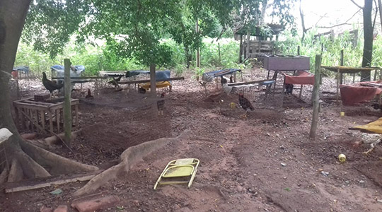 Segundo a PM Ambiental, os 30 galos estavam em dispostos em viveiros. Pelo local, foram encontradas ainda uma arena para rinhas, 14 esporas, 15 buchas protetoras, 4 biqueiras metálicas, 4 biqueiras de borracha, fracos de medicamentos e outros objetos que seriam usados nos tratos com as aves.
