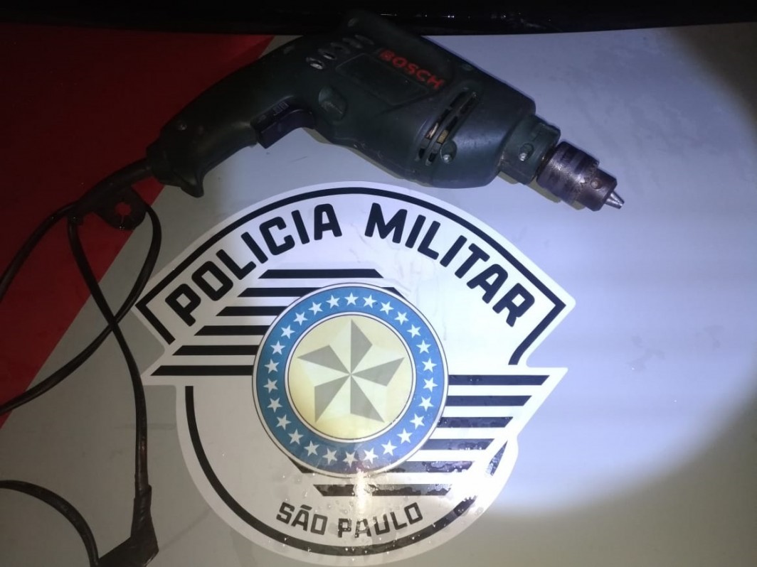 Uma equipa da Polícia Militar de Osvaldo apreendeu uma furadeira durante patrulhamento na Vila Esperança. Um homem e uma mulher foram flagrados em atitude suspeita no cruzamento das ruas Santa Cecília com Armando Sales.