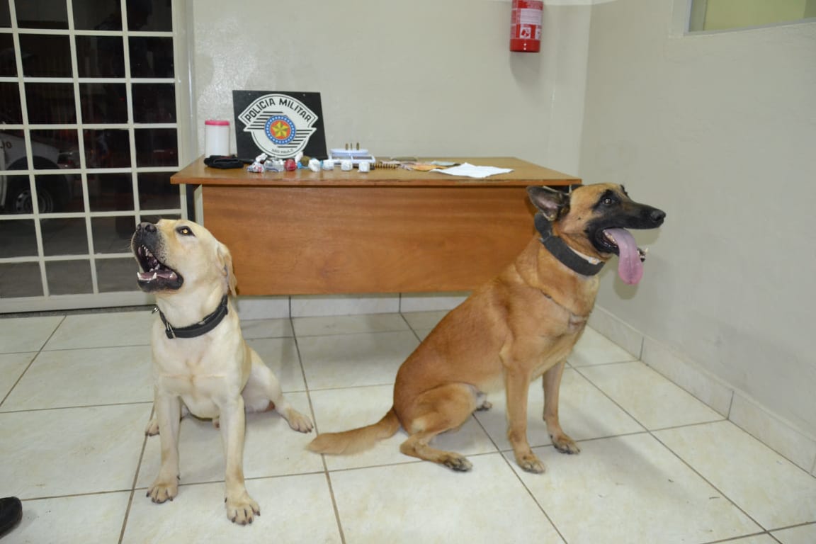 Com o suspeito havia dinheiro e diante das denúncias, foi solicitado apoio do Canil Setorial do 25° BPM/I, com os cães Zeus e Athom.