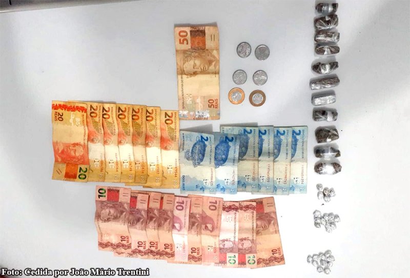 De acordo com os policiais militares, durante a Operação Impacto avistaram um indivíduo praticando o tráfico de drogas, realizaram o cerco e abordaram o menor em uma mata. Os PMs informaram ainda que junto ao corpo do infrator havia um saco plástico com 25 pedras de crack, 11 porções de maconha e a quantia de R$306,00 em dinheiro.