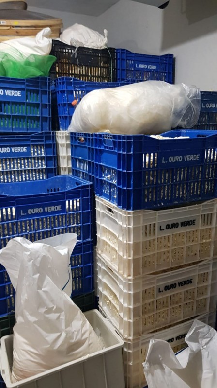 Durante buscas pelo espaço, os policias encontraram queijos prontos para comercialização, dispostos em câmaras frias, depósito e pelo chão. Foram encontrados ainda queijos em fase de processamento, sem condições de higiene e estragados.