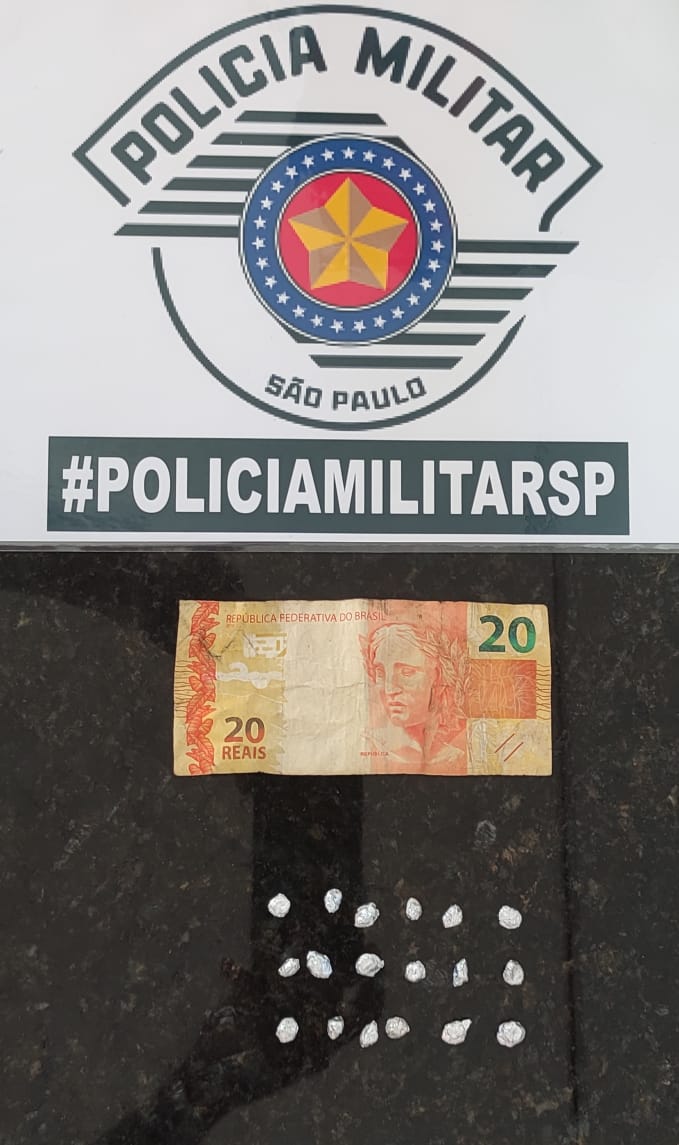 Na busca pessoal foram localizadas no bolso de sua bermuda, 18 porções de crack e R$20,00. Questionado, ele disse que venderia à R$10,00 cada porção.