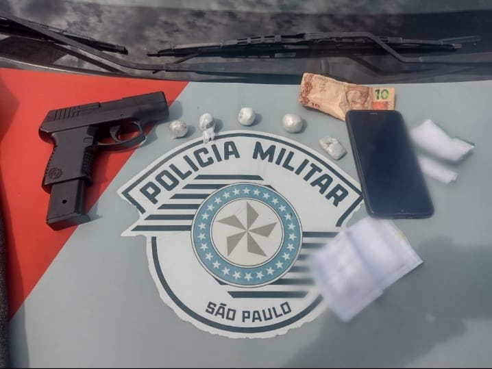 Durante a briga, o ladrão fugiu deixando uma blusa onde estavam o aparelho celular roubado, um simulacro de pistola e uma pequena porção de uma erva esverdeada aparentando ser maconha.