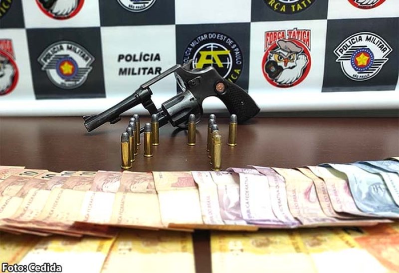 Ainda segundo a Polícia Militar, durante busca pessoal foi localizado na cintura de um dos indivíduos o revólver carregado com seis munições e em seu bolso esquerdo mais outras oito munições. Os PMs informaram que localizaram no interior do carro a quantia de R$ 425,00 em notas diversificadas e, diante do ocorrido, os indivíduos, dinheiro, armamento e munições foram apresentados no plantão em Tupã, onde o passageiro foi autuado em flagrante de porte ilegal de arma de fogo.