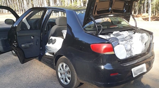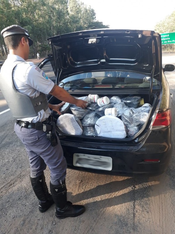 Segundo a PM Rodoviária, em fiscalização ao combate de ilícitos penais pela rodovia, a equipe de apoio operacional do Policiamento Rodoviário de Adamantina abordou um automóvel Fiat Siena com placas de Curitiba (PR), que transitava no sentido Martinópolis a Rinópolis, conduzido por G.M.V, 38 anos, amasiado, vendedor, morador de Itumbiara (GO), juntamente com o passageiro, N.D.S, 34 anos, casado, vendedor, morador de Buriti Alegre (GO).