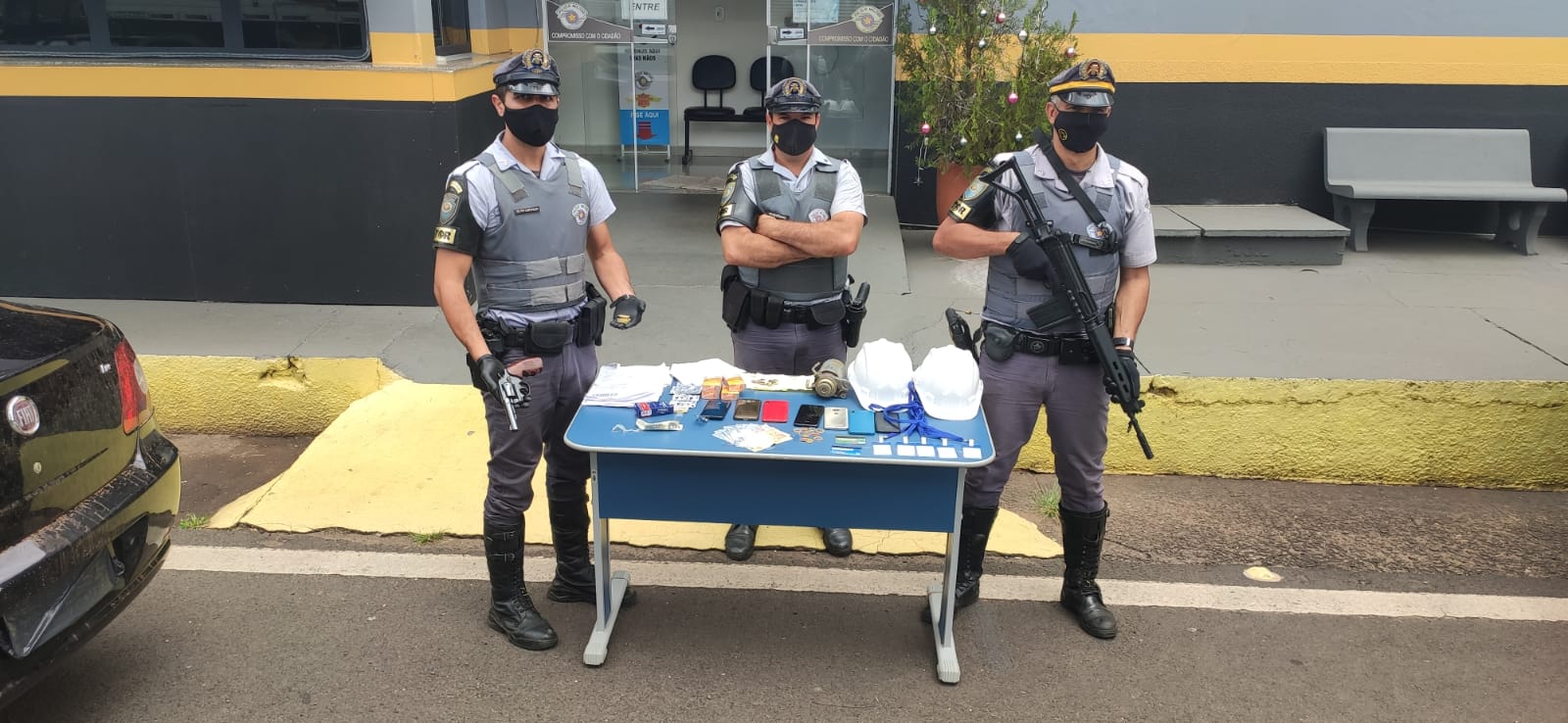 De acordo com a PM Rodoviária, o início da abordagem ao grupo se deu após o policiamento avistar um veículo com seus ocupantes em atitude suspeita, na passagem pela base policial. A conduta chamou a atenção da equipe de serviço e foi iniciada a perseguição na rodovia.