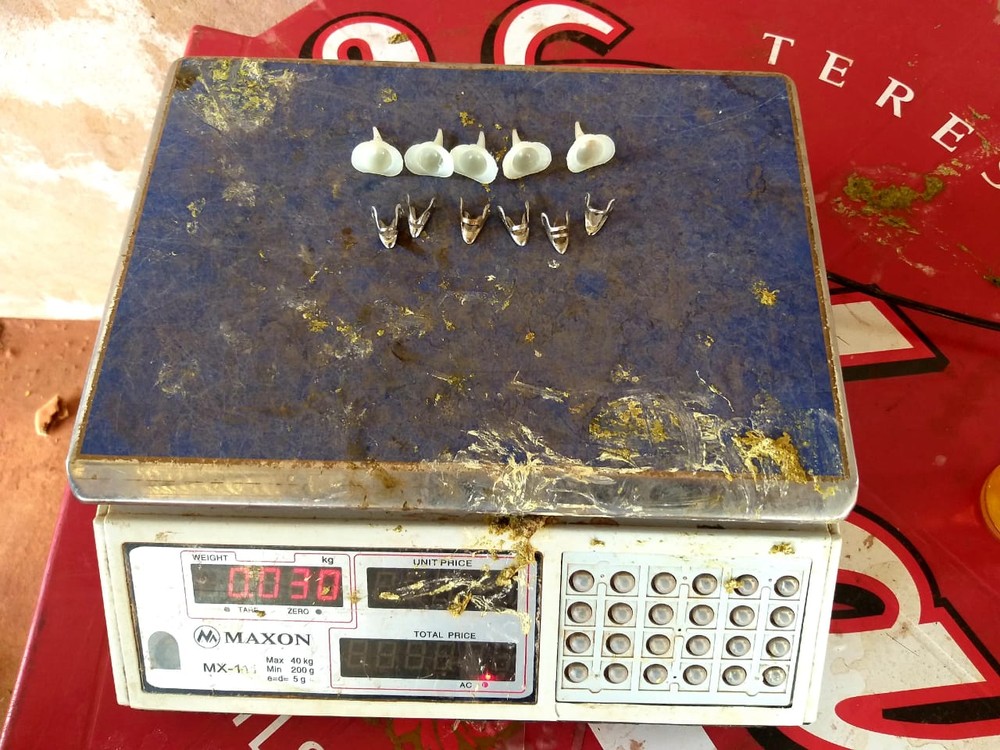 A Polícia Ambiental apreendeu 47 galos índios vivos, 1 galo índio morto, seis biqueiras de metal, cinco esporas de acrílico, quatro rebolos (rinha), uma balança para pesar os animais antes da rinha, uma mesa para medir a altura dos animais, 20 sacolas transportadoras de pano.
