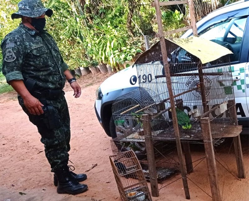 Segundo registros da Polícia Ambiental, durante atendimento a denúncia sobre pássaros em cativeiro, a equipe encontrou os seis pássaros nativos da fauna silvestre brasileira mantidos em cativeiro e sem comprovante de origem. No local foram encontrados dois Papagaio Verdadeiro, três Periquitos Rico e um Inhapim. Diante dos fatos, foi lavrado auto de infração ambiental e os pássaros foram apreendidos em termo próprio.