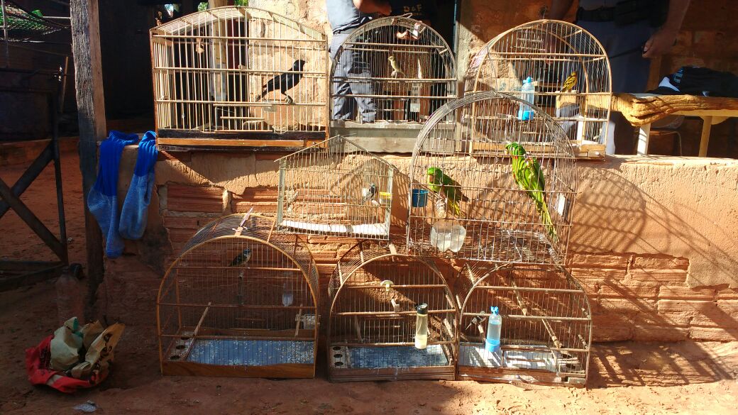 Ao todo, nove aves foram encontradas presas em diversas gaiolas e sem autorização, entre as espécies estavam coleirinhas, canários-da-terra, pássaro preto, bigodinho e duas maritacas.