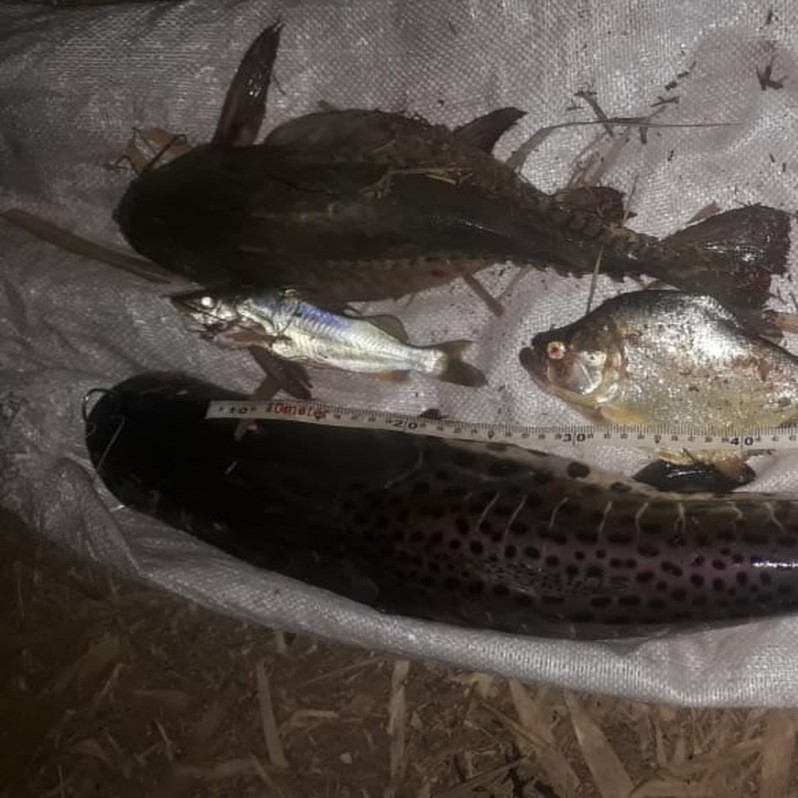 Após a abordagem, foram encontrados com os envolvidos quatro peixes das espécies pintado, bagre, mandi e piranha, totalizando 4,1 quilos. Também foram localizados dois barcos de alumínio, dois motores de popa, cinco caniços com carretilhas, molinetes e três anzóis de galho.