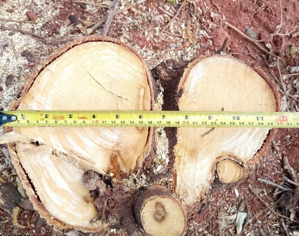 Na ocorrência em Rancharia, os policiais dirigiram-se a uma fazenda na Estrada da Lagoa Seca, onde depararam-se com o corte de 115 árvores da espécie leiteiro em área comum.