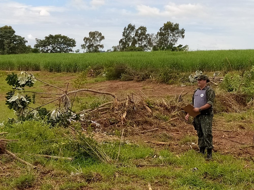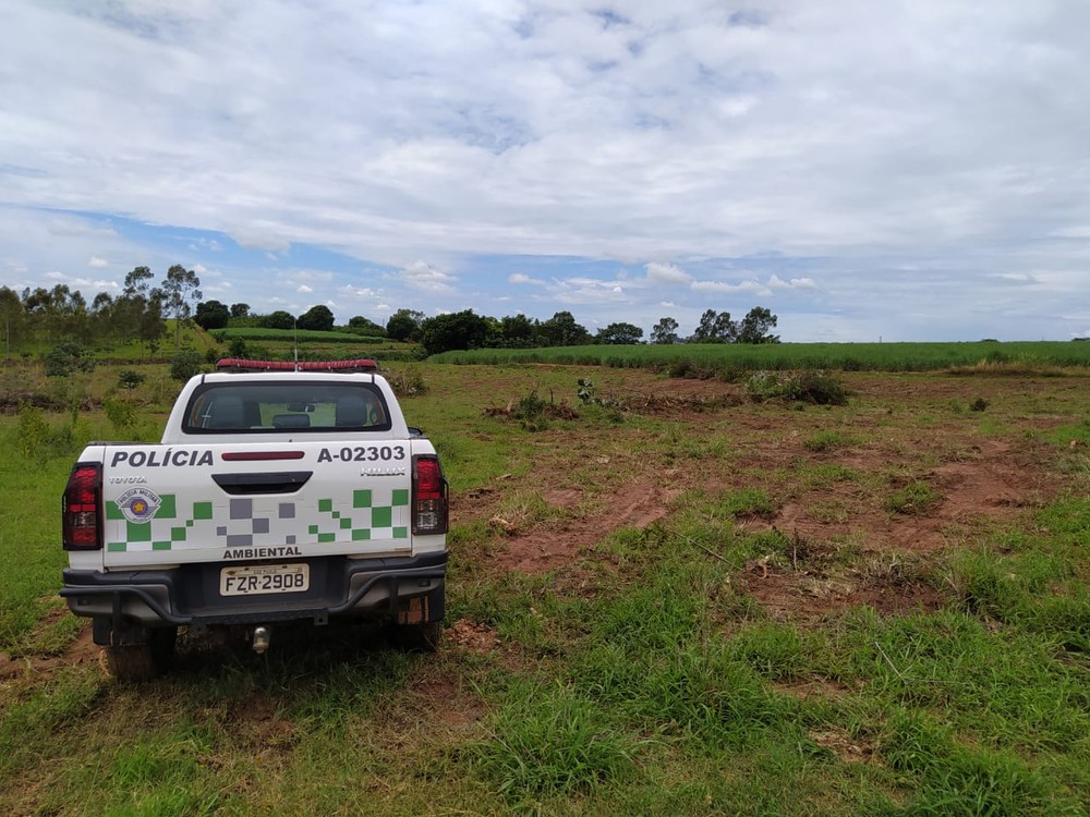 Segundo a polícia, um homem de 71 anos, identificado como proprietário da fazenda, não tinha autorização para a supressão da vegetação e foi autuado em R$ 34,5 mil.