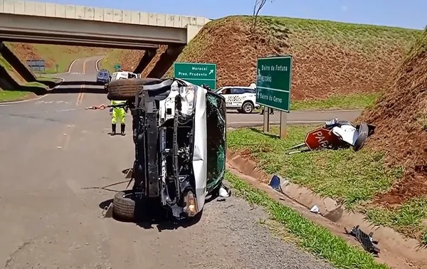 Um veículo de luxo que transportava maconha capotou no início da tarde desta terça-feira (4) após fugir da polícia, na Rodovia Raposo Tavares (SP-270), em Assis (SP).