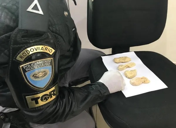 Homem, de 38 anos, com 27 invólucros, totalizando 1,450 kg
