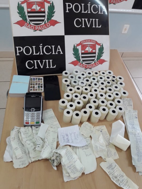 Na residência vistoriada foram localizados diversos comprovantes de apostas de jogo de bicho, além de uma máquina de cartão utilizada para a realização de apostas, bem como diversas bobinas.