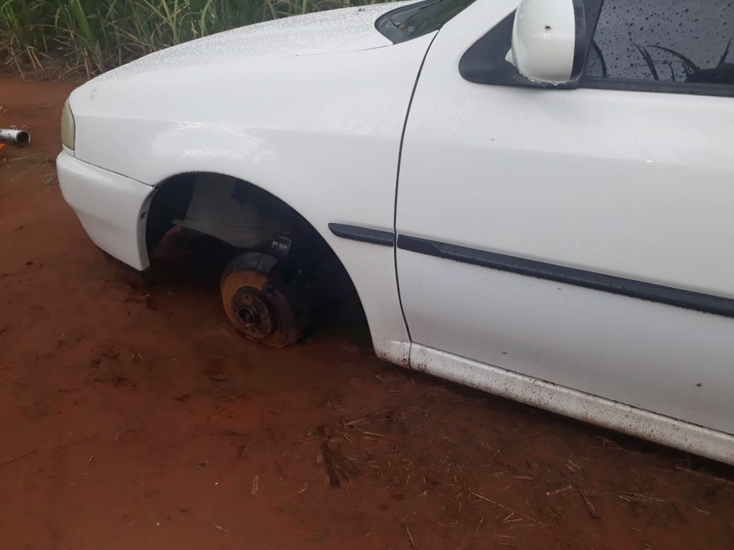 As quatros rodas, bancos e itens mecânicos, além de outros acessórios do veículo foram levados pelos bandidos. O proprietário esteve no local e realizou o reconhecimento.