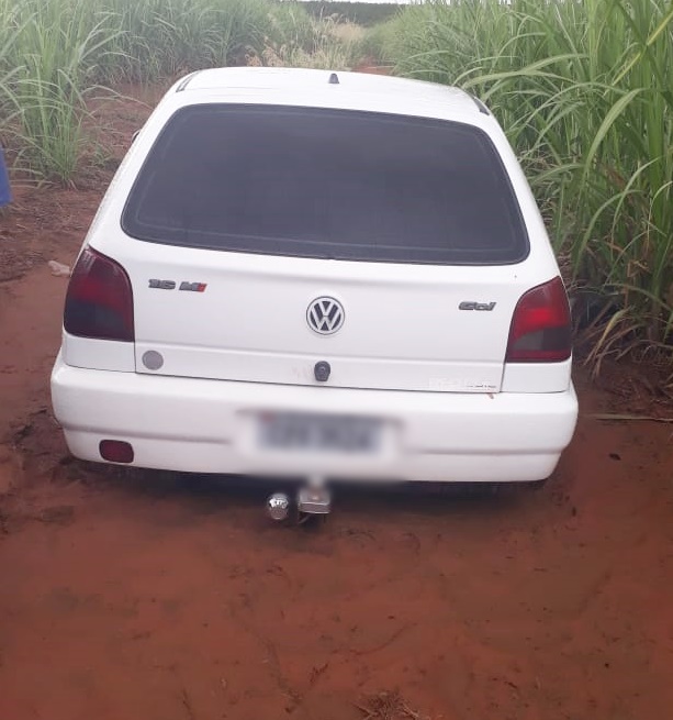 O veículo foi localizado abandonado em meio a um matagal às margens da Rodovia Assis Chateaubriand, a SP-425.