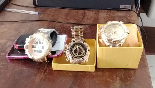 Com os investigados em Birigui a PolÃcia encontrou notas fiscais da empresa utilizada nos golpes e informações sobre outras possÃveis vÃtimas daquela região, além de R$ 1.390 em dinheiro, 12 pedras que aparentam ser ouro, 12 celulares, quatro notebooks, três relógios de luxo e uma porção de cocaÃna.