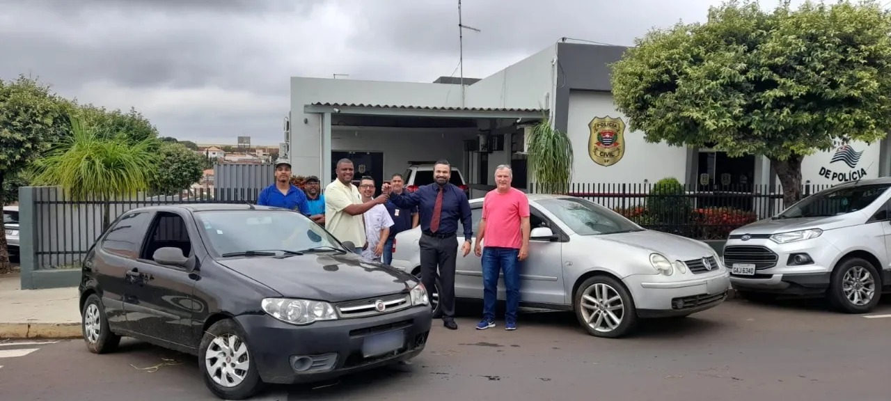 Os veículos apreendidos e doados, um VW/Polo e um Fiat/ Pálio, ocupavam o pátio da Delegacia de Polícia de Junqueirópolis.