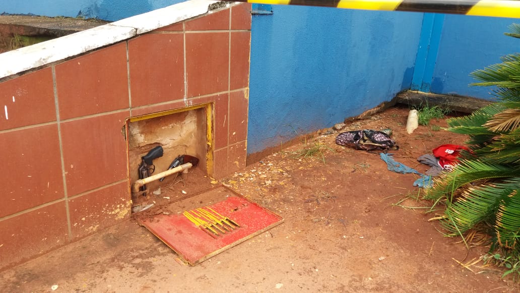 Do local, os suspeitos levaram munições, duas armas de fogo, tipo revólver, colete balístico, um rádio comunicador, um cinturão tático que pertenciam a empresa de segurança privada que presta serviço a instituição bancária.