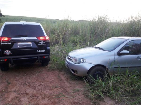 De acordo com o delegado, o Fiat Palio, com placas de Araçatuba, estava em um local de difÃcil acesso, próximo à uma mata, localizada no Bairro Mandaguari.