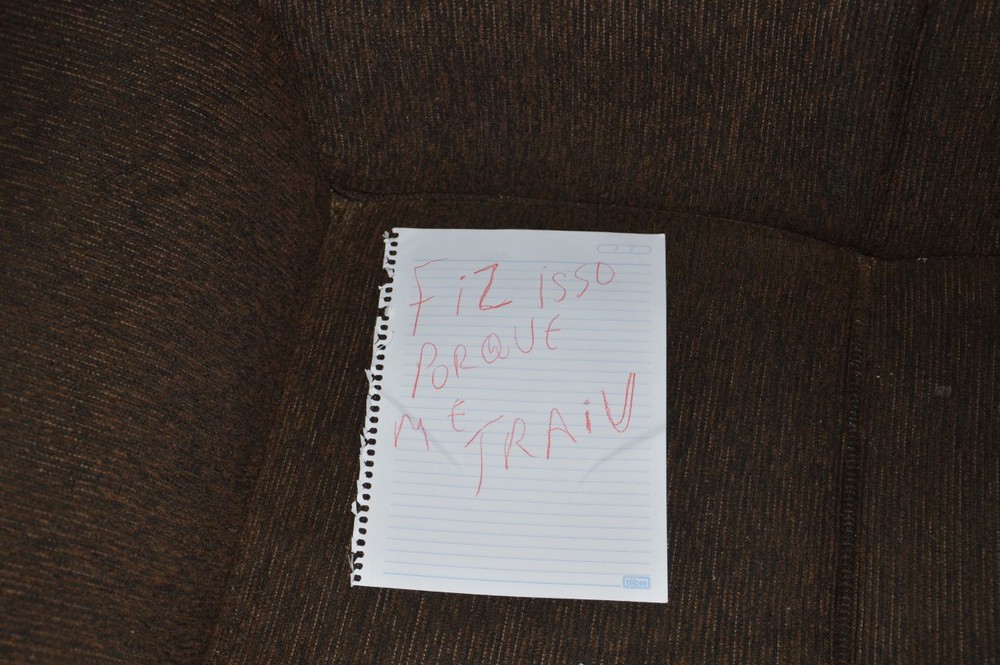 Na sala, os policiais encontraram um bilhete escrito a mão em um papel que dizia: "Fiz isso por que me traiu (sic)". Sandro Alécio Bispo, de 41 anos, foi preso perto da Delegacia de Junqueirópolis ainda no dia 3.