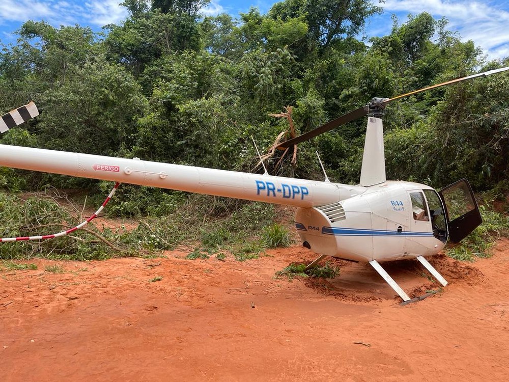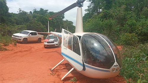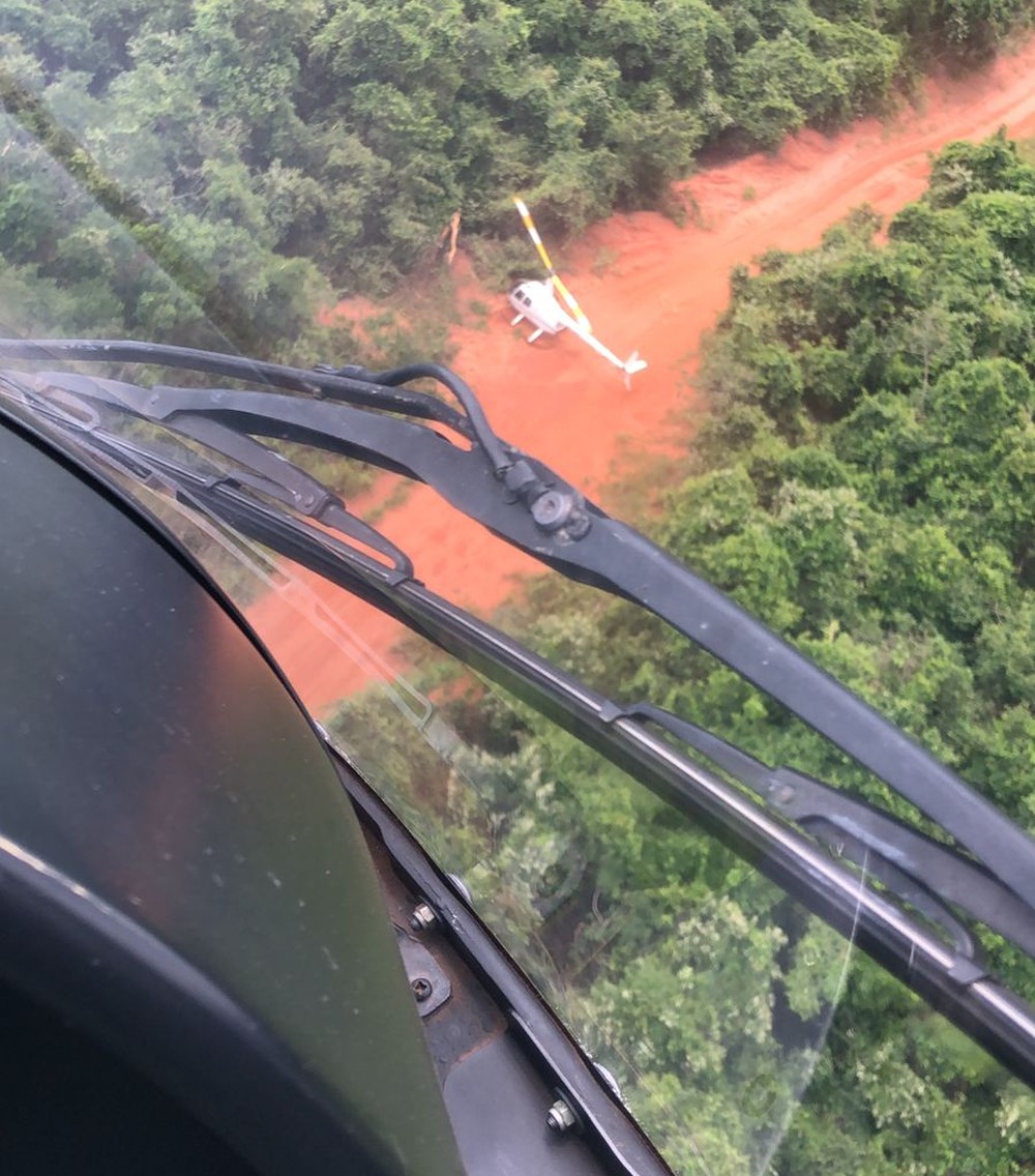 Com apoio do helicóptero Águia, da PM, policiais conseguiram interceptar a aeronave, da marca Robinson, que pousou em uma área rural próxima à Rodovia José Bassil Dower (SP-421). A aeronave foi localizada ainda funcionando e com as portas abertas.