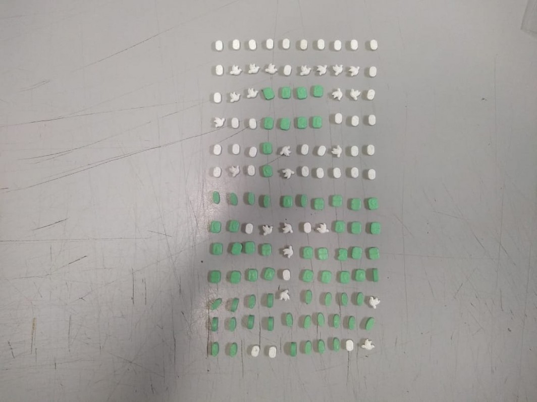 Durante a revista no quarto do indivíduo, a Polícia Militar encontrou em uma cômoda uma embalagem plástica contendo 130 comprimidos de ecstasy.