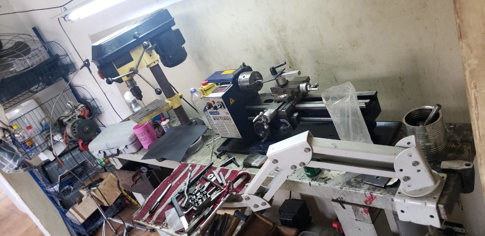 Durante a varredura na residência, os policiais militares depararam-se com uma oficina, que é utilizada pelo morador.