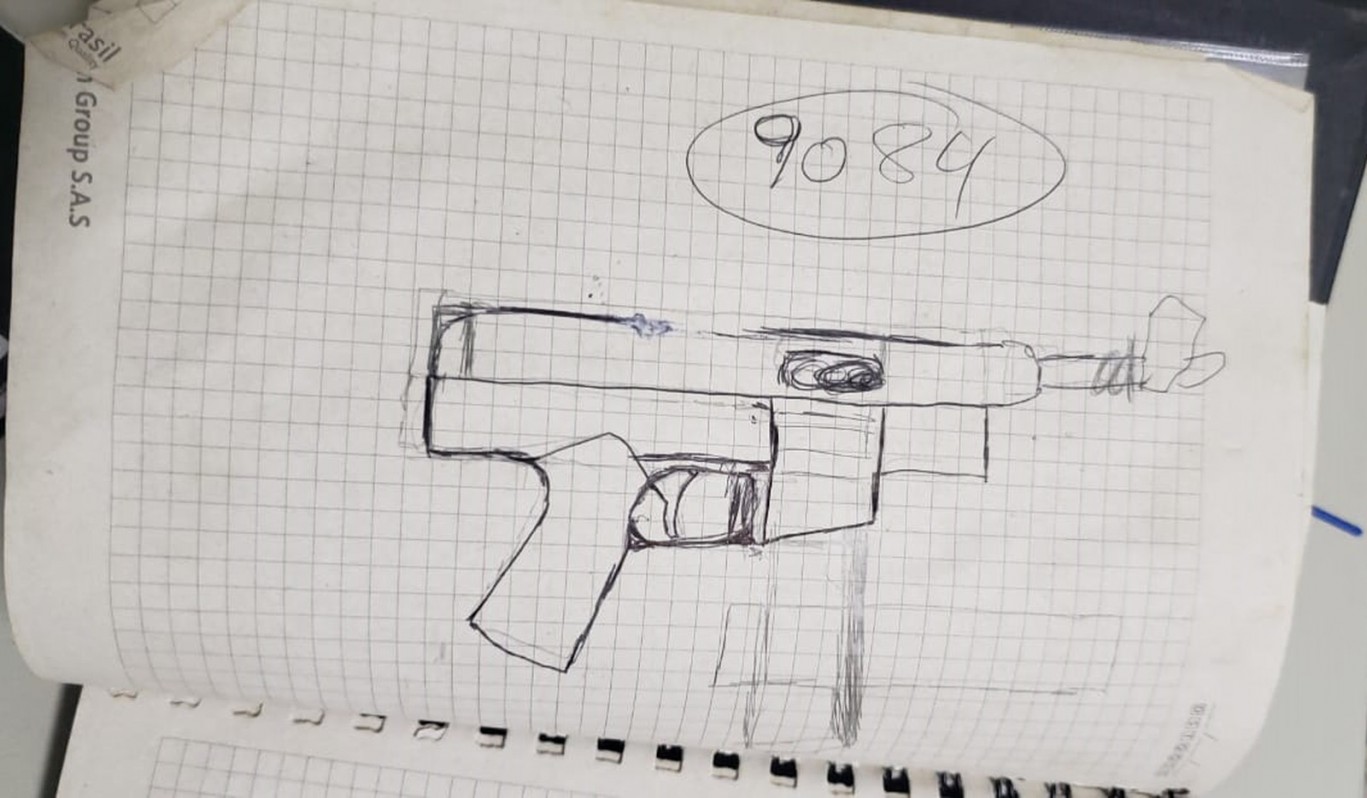 Também foi localizado um caderno que continha anotações de fabricação de arma de fogo e outras peças que aparentavam ser utilizadas na produção caseira de armamento.