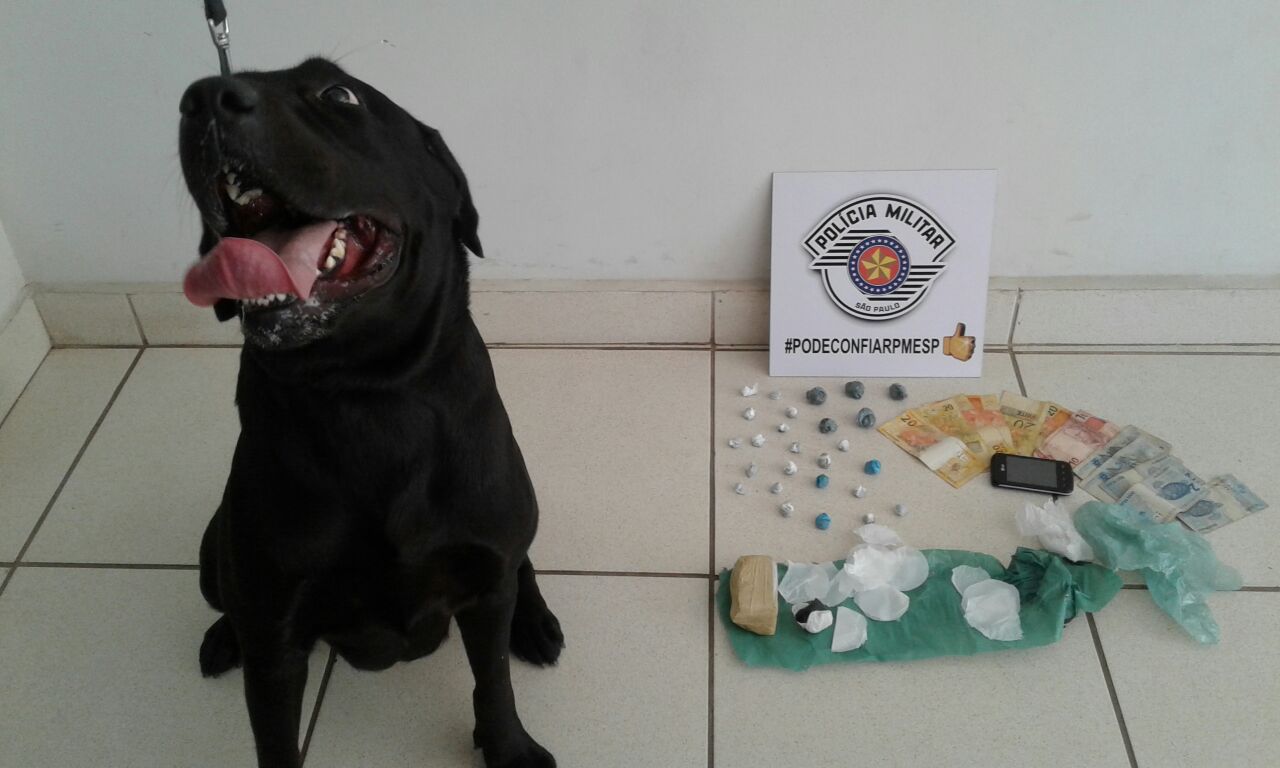 Dando sequência às buscas com o apoio do Canil, com cães farejadores, foi localizado no interior do colchão, mais porções de maconha e no quintal, um tablete e várias embalagens já cortadas em formato circular, padronizadas, que são utilizadas para armazenar o entorpecente.