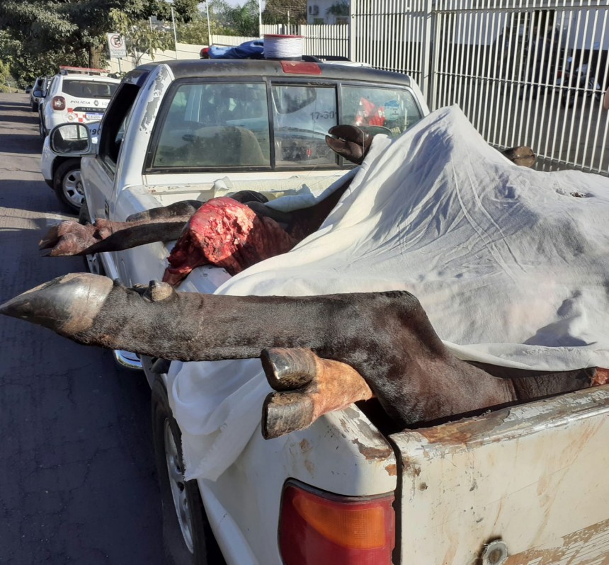 Durante a madrugada desta terça-feira (26), Policiais da Terceira Companhia PM, lotados no Grupamento de Salmourão abordaram um veículo com partes de uma novilha abatida.