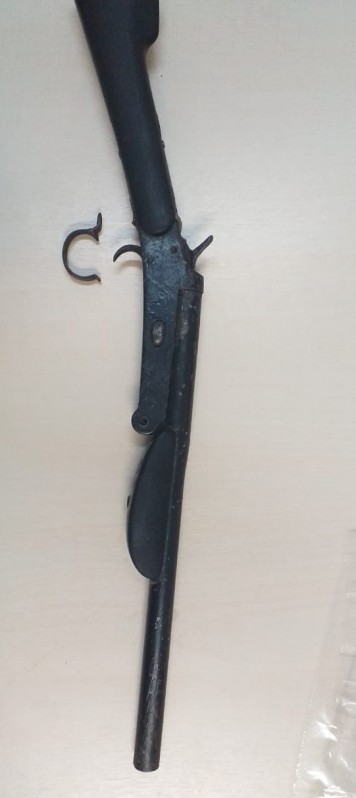 A arma foi entregue para a equipe pelo dono do bar, feito averiguação do armamento e confirmado ser uma garrucha sem munições.