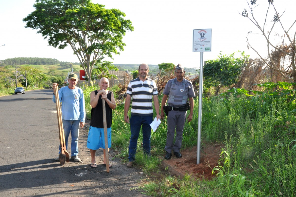 Dando continuidade aos trabalhos de implantação do PVS, "Programa Vizinhança Solidária", uma parceria entre a PolÃcia Militar e a Comunidade, na manhã desta quinta-feira, 19 de outubro, representantes do Bairro Vale Verde, Bruno Augusto E. Sturari e DercÃlio J. dos Santos, juntamente com o Comandante da BCS- Base Comunitária de Segurança, Subten PM Ariovaldo José da Silva, complementando a 2ª Fase do Programa Vizinhança Solidária, fizeram a fixação das placas do programa atendendo todos os requisitos previstos para a implantação.