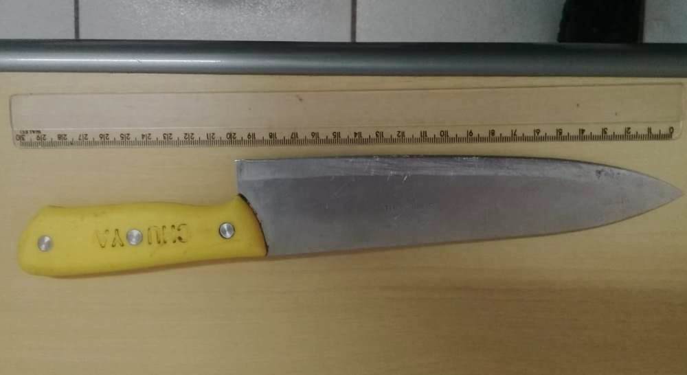 Ele foi abordado e a faca foi localizada em sua cintura escondida embaixo das vestes.
