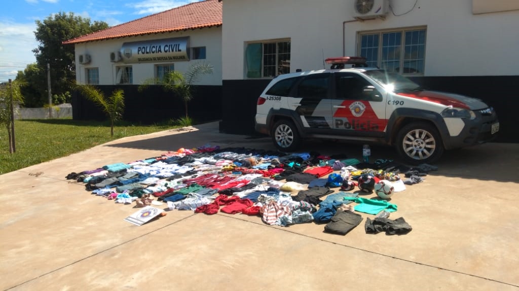 Diante dos fatos, o morador de Rinópolis recebeu voz de prisão e foi encaminhado para o Plantão Policial juntamente com os produtos furtados, sendo quatro bonés, quatro pares de chinelos, quatro chaveiros, quatro canetas, um relógio, um despertador, quatro bolas, um jogo de talheres, 24 meias diversas, quatro polainas, quatorze calcinhas, um sutiã, um top de ginastica, 29 calças de abrigo, sete cuecas.
