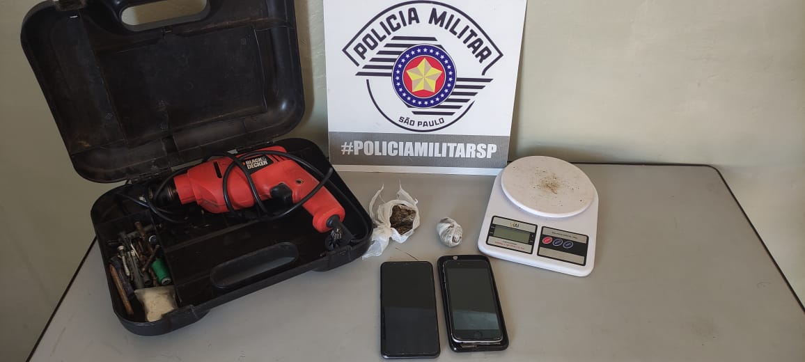 Diante disso os militares foram até a residência do indivíduo, de 27 anos, que após abordado informou que teria certa quantia de maconha no interior do imóvel, onde foi localizado na sala uma outra porção de maconha juntamente com uma balança de precisão e ainda uma furadeira o qual não soube informar a procedência.
