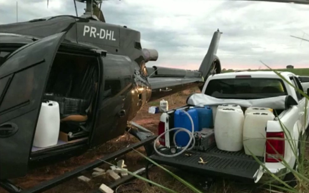 Há informações de que a quadrilha também abastecia o helicóptero em uma cidade do Paraná. Segundo a PF, o helicóptero está com documentação regularizada.