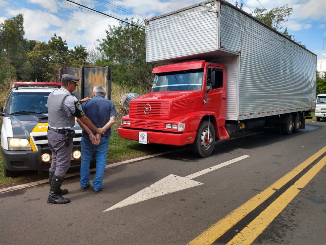 Durante ação fiscalizadora de trânsito pela SP-425 Rodovia Assis Chateaubriand, Km 441, município de Indiana, foi abordado um caminhão Mercedes Benz, cor vermelha, com placas Cruzeiro D'Oeste - PR, conduzido por um homem de 65, J.L., residente em Umuarama - PR.